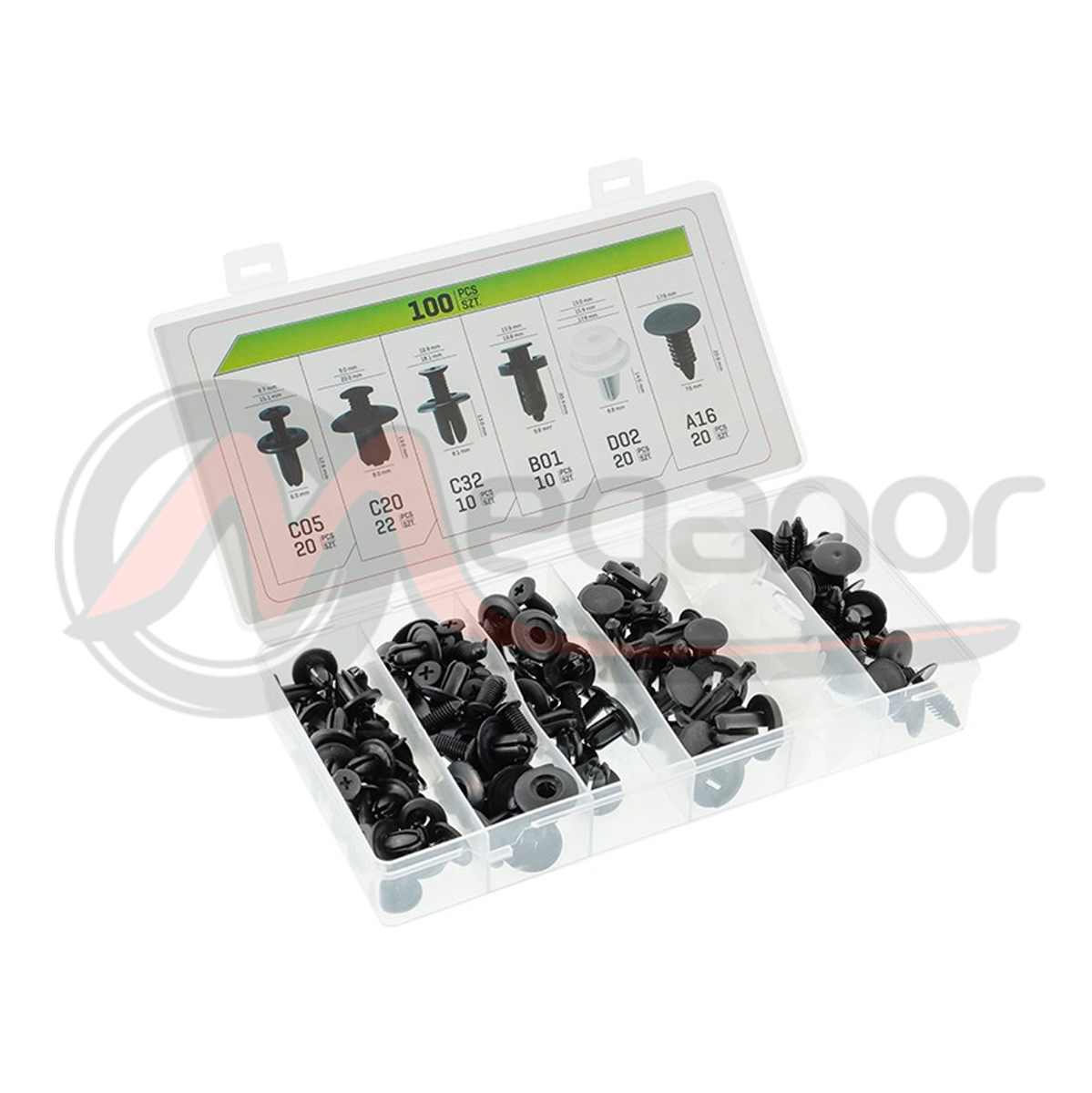 Um conjunto de clipes é um produto que será perfeito para o seu carro. Inclui os 6 tipos de clipes mais populares que são comumente usados ??na maioria dos carros do mercado. São feitos de plástico forte e durável, o que garante um uso longo e sem problemas, sem medo de corrosão dos elementos, independentemente das condições climáticas. O conjunto foi colocado em um estojo com compartimentos dedicados, o que permite o armazenamento conveniente dos clipes. PARA: Estofamento. Pára-choques, cavas das rodas, ripas. Estofamento dos bancos. Revestimento, painéis das portas.Pára-brisas. Coberturas do radiador e do motor.