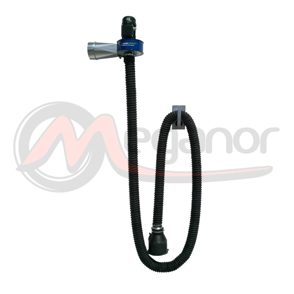 Aspirador de 1000m3/h 0,25 HP. Mangueira de diâmetro de Ø 75mm e 5m de comprimento.1 bicos de neoprene.1x suportes de parede em aço inoxidável.