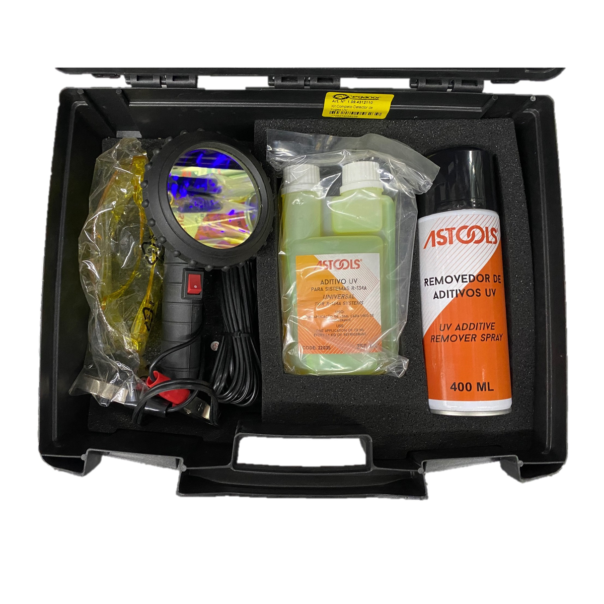 Os nossos kits detetores de fugas UV são a solução prática e econômica para deteção de possíveis fugas em sistemas de ar condicionado automóvel. Estes estojos práticos contêm tudo o que é necessário para a injeção do aditivo UV fluorescente, proteção ocular, busca visual de perdas e limpeza final das manchas deixadas pelo aditivo UV.