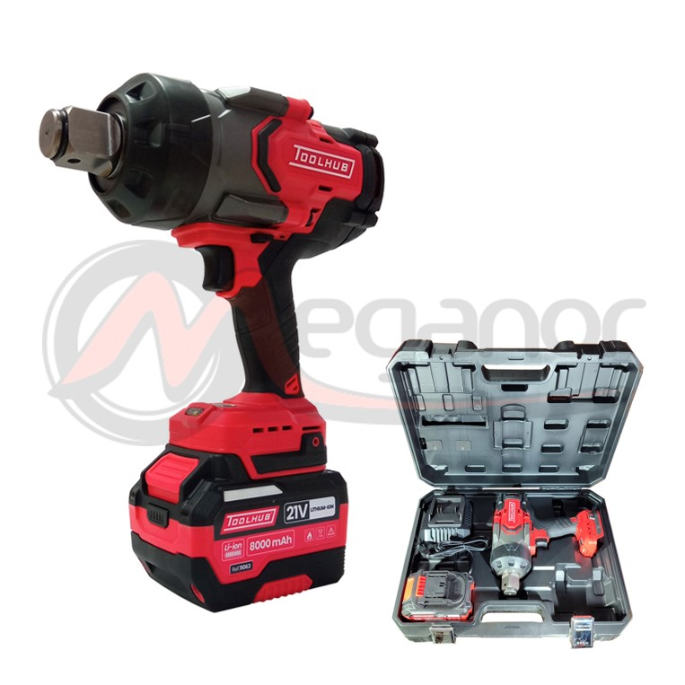 Bateria Íon-lítio 21V 8000 mAh.Revoluções Ociosas 0 - 1800 RPM.Frequência de impacto 0 - 2200 IPM.Torque máximo 2200 Nm.Quadrado 1\"DR.INCLUI: 2 Baterias + Carregador