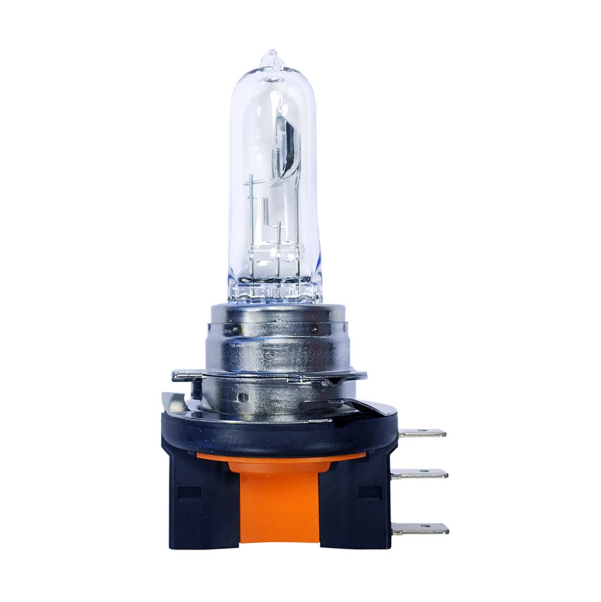 Uma lâmpada halógena de dois filamentos com a designação H15 é uma lâmpada utilizada na iluminação frontal do veículo. É um modelo padrão instalado com sucesso em carros novos (Volkswagen, Audi, Skoda). Uma característica adicional desta lâmpada é que a quantidade e a qualidade da luz que ela produz não mudam ao longo de sua vida útil. Sua potência nominal é de 15 watts para uma fibra e 55 watts para a outra. O tipo de soquete de montagem é PGJ23t-1. Faróis de halogênio são comumente usados ??em veículos modernos.