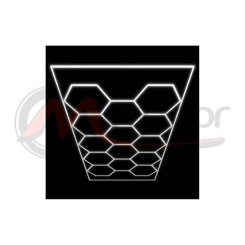 -Este conjunto de luzes LED hexagonais, com design tipo favo de mel, oferece uma solução de iluminação prática e moderna, ideal para oficinas, garagens e espaços que exigem brilho potente e uniforme. A sua luz branca fria de 6500K garante visibilidade clara e precisa, enquanto o padrão hexagonal confere um toque estético elegante e distinto.