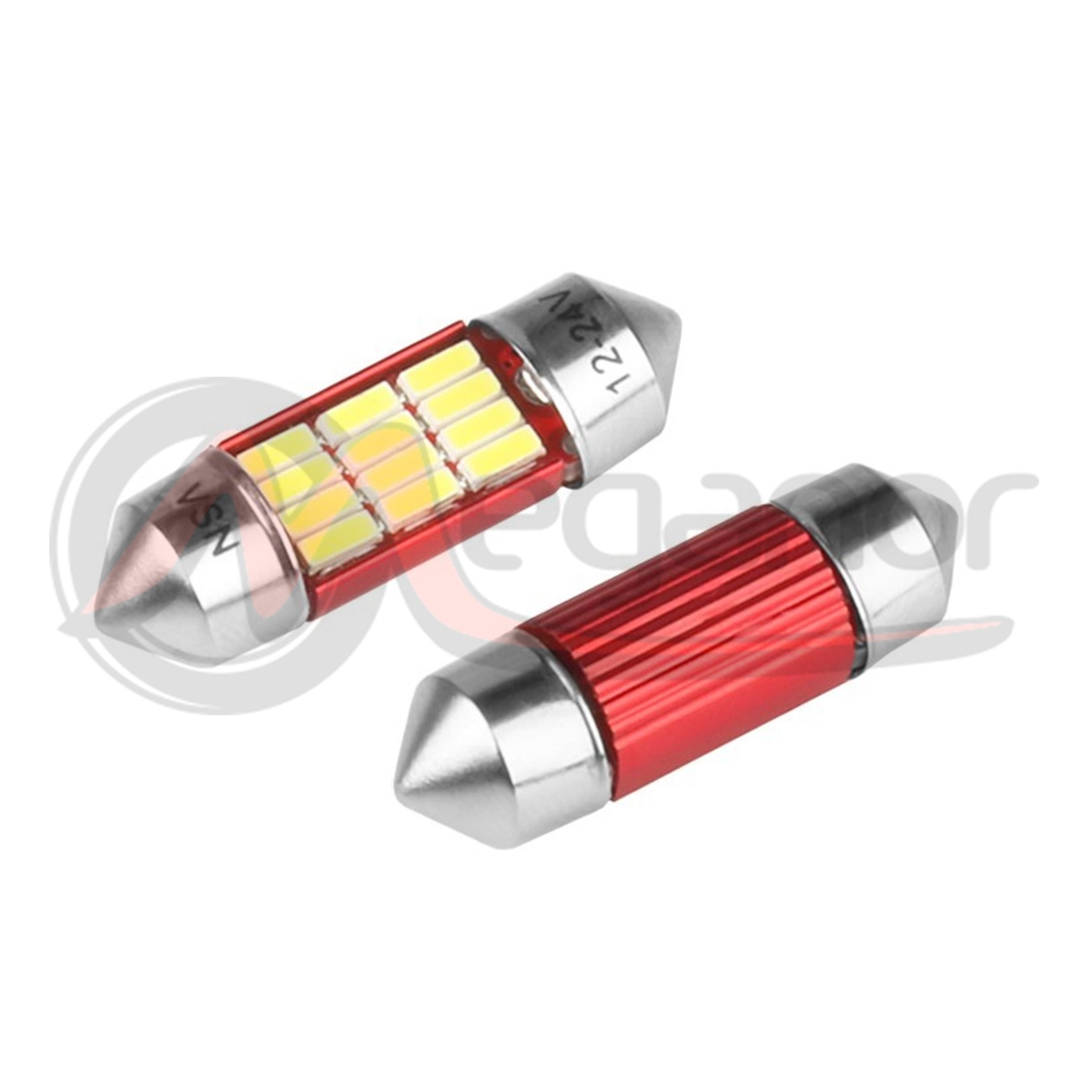A fonte de luz é 12x 4014 SMD LED. A cor clara é branca fria. A tensão é 12V/24V. O consumo de energia é de 2,3W. Comprimento 31mm. A embalagem contém 2 peças,