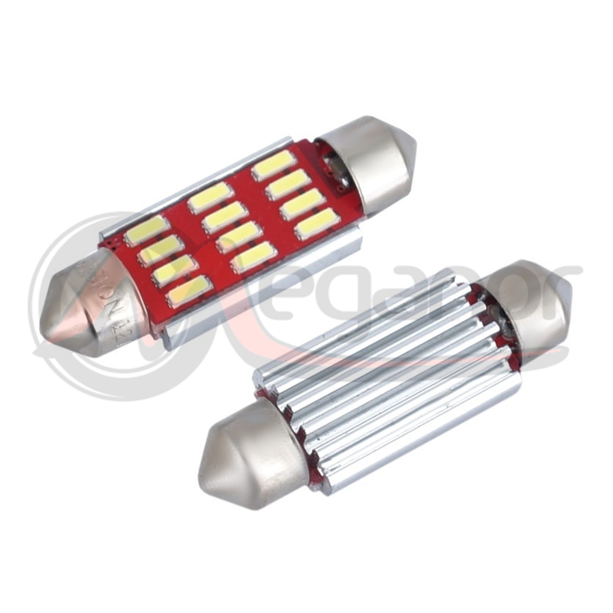 A fonte de luz é 12x 4014 SMD LED. Cor branca clara. A tensão é 12V. Comprimento 39mm. A embalagem contém 2 peças,