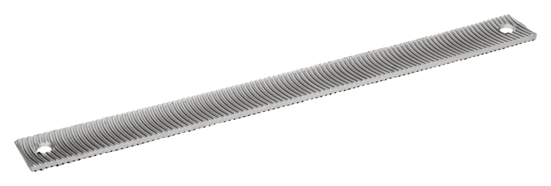 Para trabalhos em chapa metálica, tais como carroçarias e frigoríficos|Também adequada para materiais macios, onde é necessário obter um índice de remoção de material maior e um acabamento suave|Forma: lados planos e superfícies paralelas|Superfícies convexas fresadas com dentes curvos|Fornecida com furos para parafusos de suporte|As lâminas de 12\" adaptam-se aos suportes 9-462 e 9-463, e as lâminas de 14\" adaptam-se ao suporte 9-462|Tipo de picagem: 1 = Bastardo, 2 = 1/2 murça