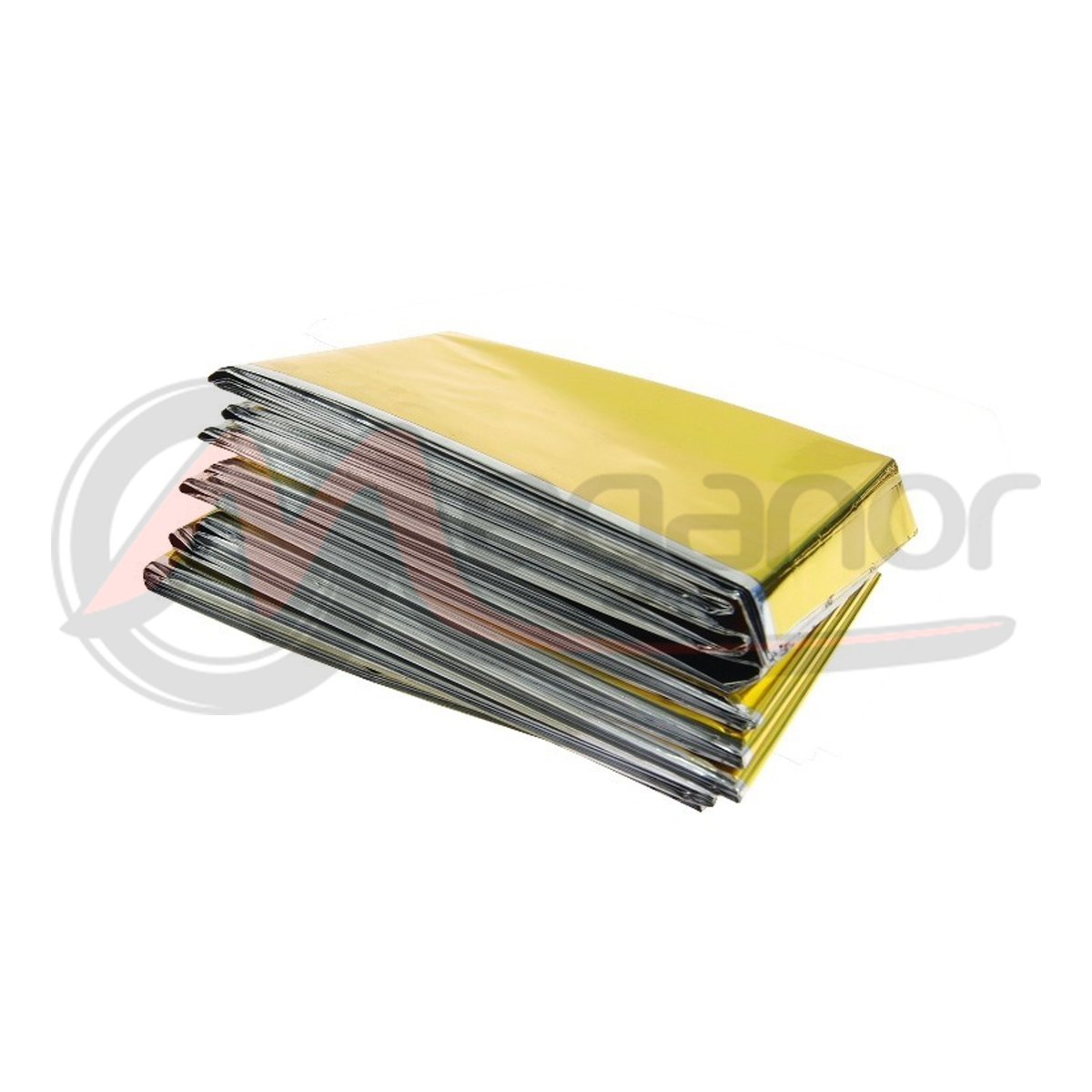Dimensões da manta térmica 160x210cm. A espessura da manta é de 12 µm. É um elemento essencial em todas as ambulâncias e pronto-socorros hospitalares. É fácil de guardar e ocupa pouco espaço quando dobrado. A folha é resistente a rasgos e danos mecânicos.