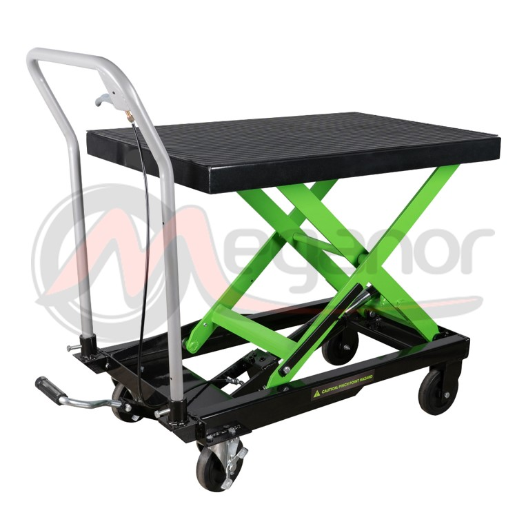 Macaco saca-rodas hidráulico para ajudar os utilizadores finais nas atividades de mudança de pneus|É capaz de elevar rodas até um peso de 600 kg|Os sistemas de cabo ou pedal permitem elevar a roda a ser montada/desmontada|Equilíbrio perfeito entre uma elevação rápida e uma abordagem precisa, obtida por um potente êmbolo hidráulico que é capaz de alcançar a altura máxima em 40 cursos do pedal para obter um processo de montagem e desmontagem rápidas|Sistema mecânico ajustável de cinco posições que permite o ajuste a uma vasta gama de diâmetros de pneus, de 300 mm a 1300 mm|Plataforma hidráulica para acrescentar estabilidade adicional e corrigir o posicionamento da roda do veículo inclinando até 4,1 graus|Características de segurança|- Libertação de pedal, equipado com a característica de segurança de homem morto|- Batente de pé para assegurar a segurança do utilizador final|- As rodas traseiras estão equipadas com um travão para fixar o macaco saca-rodas e assegurar que não existirão movimentos durante as atividades de substituição de pneus|Rolos de aço para permitir que o pneu rode para o colocar a coincidir com a posição do parafuso do veículo|Graças aos cabos, mesmo os maiores pneus de veículos podem ser movidos e transportados muito facilmente