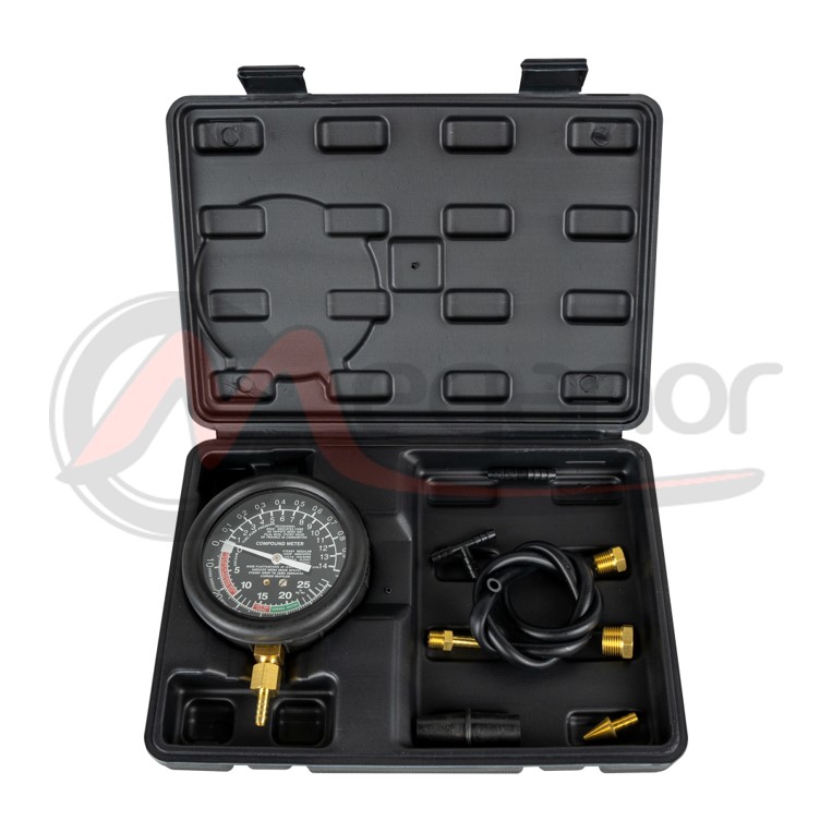 Este kit inclui todos os adaptadores para testes de compressão em motores a diesel e a gasolina.