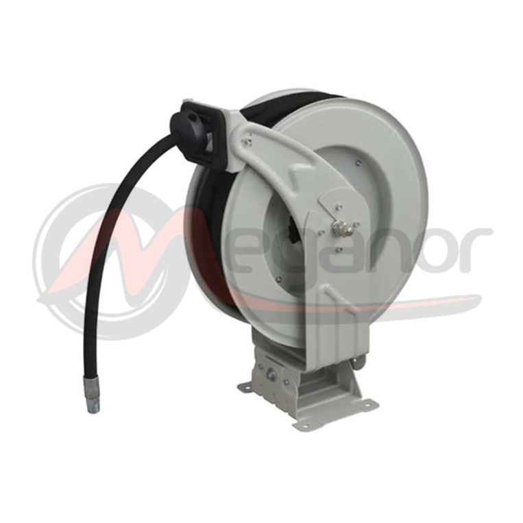 Enrolador de mangueira fixo em ABS e suportes em aço pintado s. 430, para óleo e similares, 150 bar, com mangueira de borracha preta 10 m, ø 1/2\"