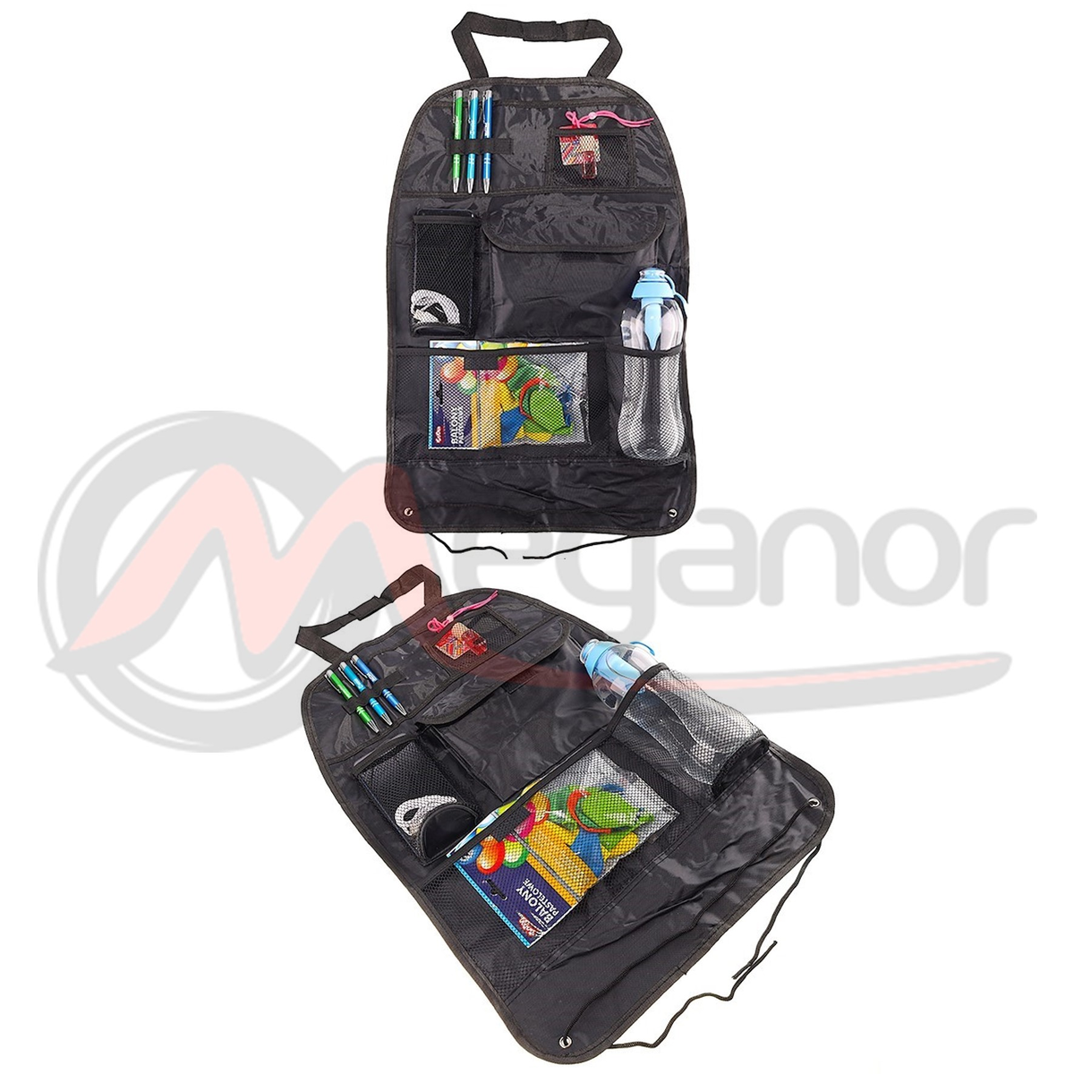 O organizador é a solução perfeita para guardar pequenos objetos no carro (bebidas, telefones, brinquedos). Pode atuar como um assento protetor - contra os sapatos das crianças que viajam no banco traseiro.
