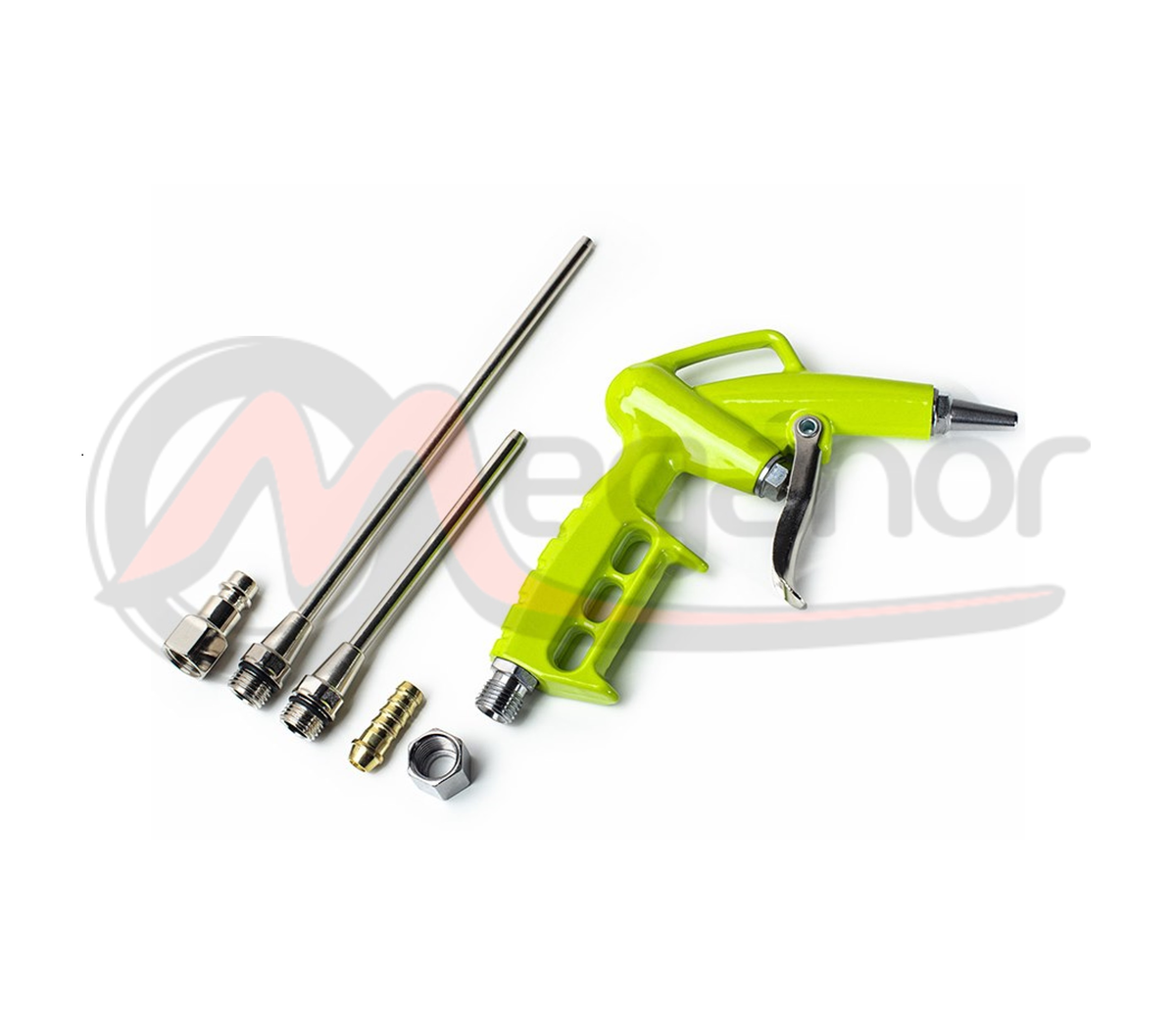 Uma pistola de sopro com vários bicos e adaptadores de ligação incluídos é uma ferramenta versátil. Pode ser utilizado sempre que haja necessidade de soprar ou limpar locais de difícil acesso. É fabricado em liga de alta qualidade, resistente à corrosão.