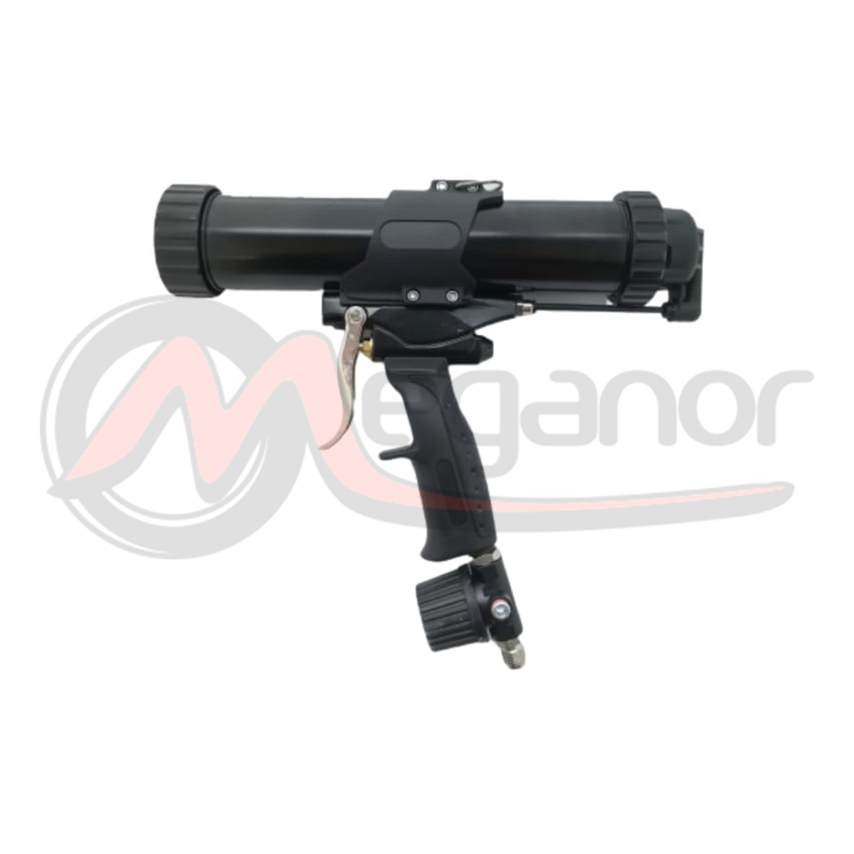 Pistola pneumática para aplicação de mástiques e poliuretanos em cartuchos de 310 ml, tanto em plástico como alumínio.