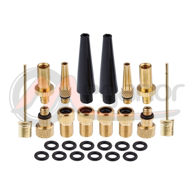 O conjunto inclui 26 elementos: agulhas de inflação, vedações, adaptadores redutores. O conjunto também inclui redução AV DV SV.