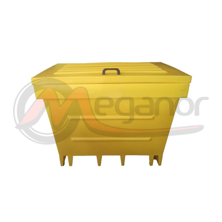 Reservatório de dupla parede em polietileno de alta densidade, com escorredor de filtros, apropriado para óleo usado.