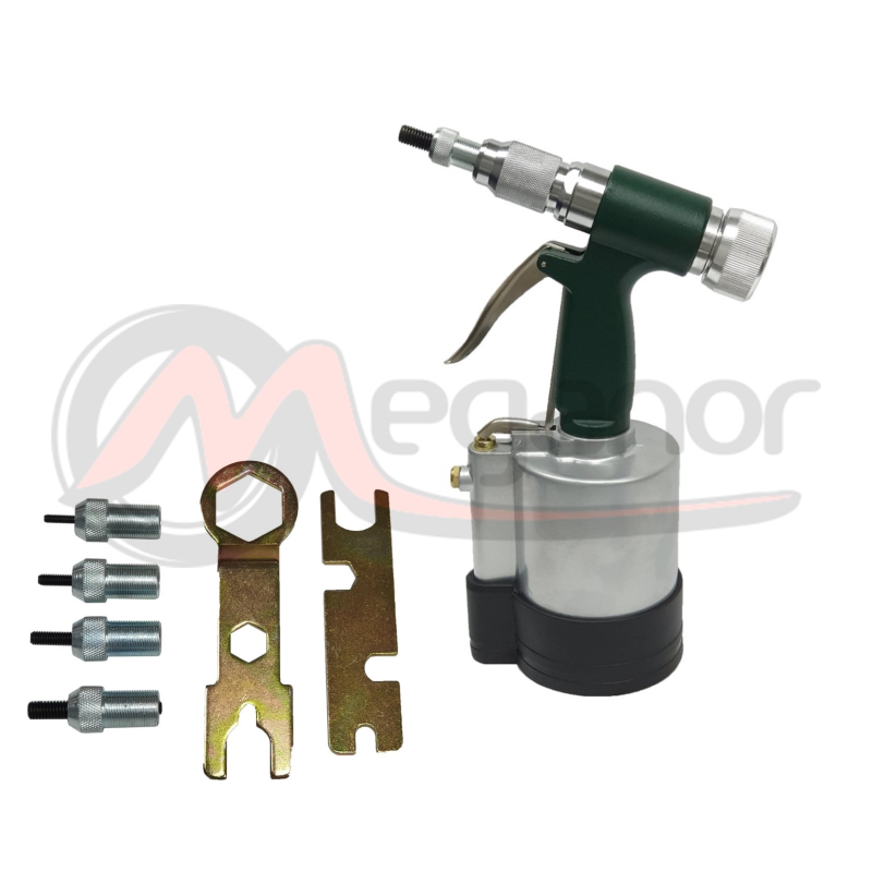 -Rebitadeira pneumática para fixação de rebites roscados, ideal para oficinas mecânicas devido ao seu baixo custo.