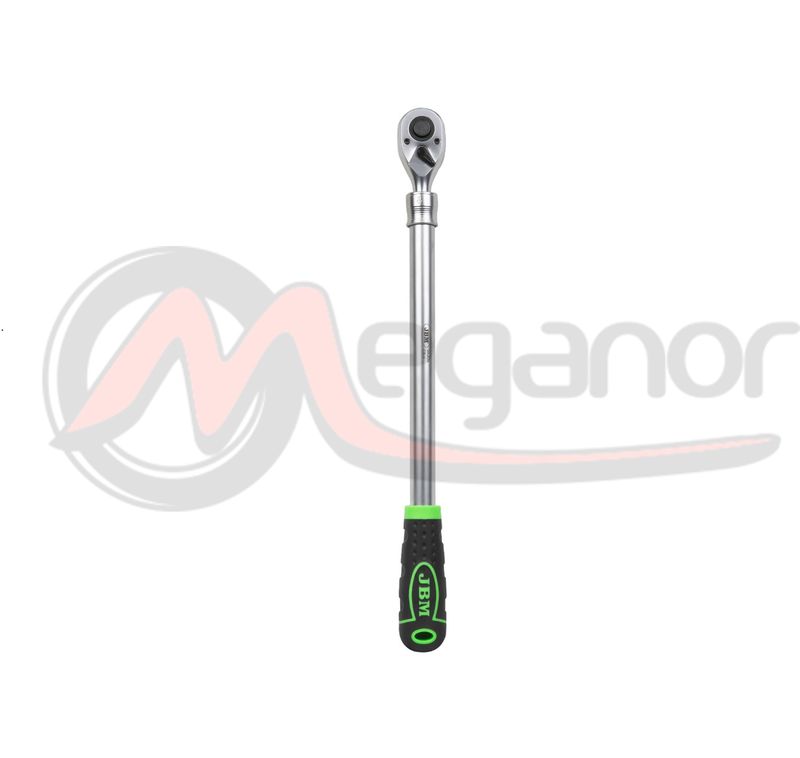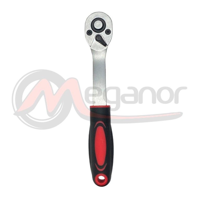 Roquete de cabeça articulada de 1/2\"|A cabeça roda 270° para alcançar áreas difíceis|72 dentes / ângulo de ação de 5°|Interruptor de direção na cabeça acessível a partir de quase qualquer ângulo|Requisitos de dureza e binário de acordo com ISO 3315:2011|Função de desengate rápido|Material: aço de alto desempenho|Acabamento: micromate|Em embalagem individual num cartão de plástico antirroubo