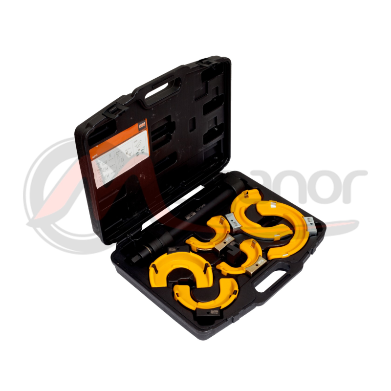 Aplicação: comprimir molas Macpherson|Conteúdo:|Dispositivo/Pistão [BS1540]|3 pares de maxilas com tampas de plástico [BS15125, BS15160, BS15212]|Pequeno adaptador para molas cónicas [BS1550]|Todos os componentes estão disponíveis individualmente|Universal, abrange 90% do parque de veículos [3 pares diferentes de maxilas]|Intervalo de trabalho das maxilas|BS15125: 80 - 115 mm|BS15160: 110 - 150 mm|BS15212: 140 - 195 mm|Pode ser usado para molas retas e cónicas|Capacidade de compressão máxima: 1 T|Intervalo de trabalho máximo da mola do dispositivo: 300 mm|A cabeça hexagonal de 24 mm pode ser operada manualmente ou com uma ferramenta pneumática|Protetores de molas nas maxilas [BS15125C, BS15160C, BS15212C]|COMPONENTES E PEÇAS DE SUBSTITUIÇÃO|BS1540/Dispositivo/Pistão|BS15125/Par de maxilas 80 - 115 mm|BS15160/Par de maxilas 110 - 150 mm|BS15212/Par de maxilas 140 - 195 mm|BS1550/Pequeno adaptador para molas cónicas