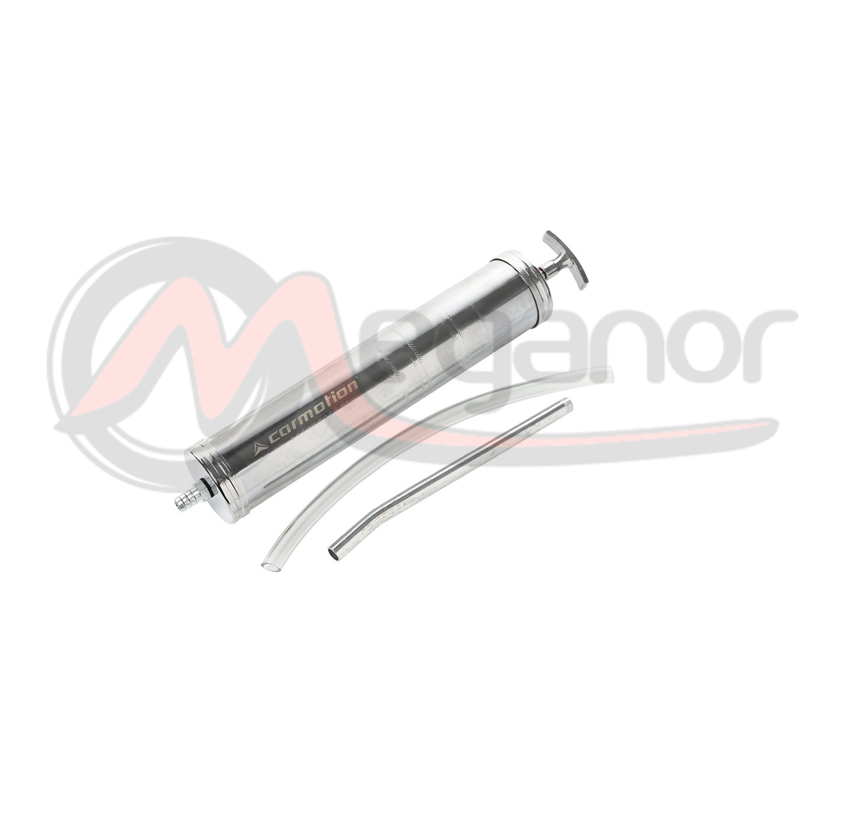 Uma bomba manual profissional de 500 ml é uma ferramenta indispensável que funcionará bem em oficinas profissionais, serviços automotivos e garagens residenciais. Ele permite a extração e prensagem precisas de óleo de vários sistemas, como motores, transmissões e outros mecanismos de lubrificação/ A bomba é feita de aço inoxidável de alta qualidade, o que garante sua durabilidade e resistência à corrosão, o que é especialmente importante quando em contato com óleo e outros lubrificantes. A superfície do dispositivo é adicionalmente coberta com uma camada de cromo, que não só melhora a estética, mas também protege a bomba contra desgaste e danos mecânicos./ Característica: Capacidade: 500 ml/Construção em aço cromado/ Equipamento:Mangueira flexível (12 x 290 mm)/ Tubo de lubrificação dobrado (12 x 240 mm)