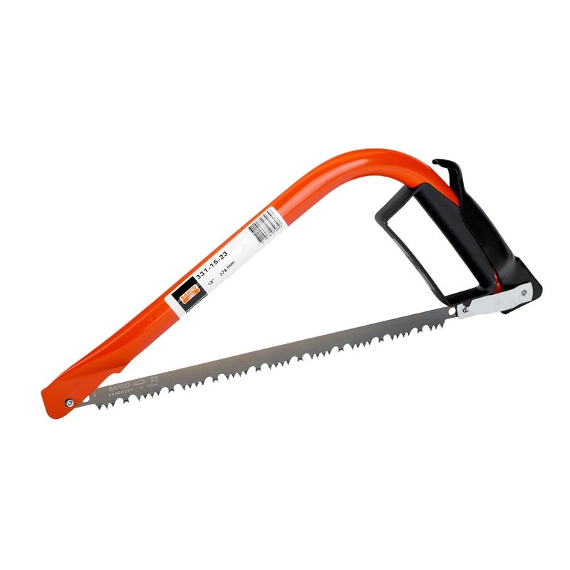 Serrote de arco de 15\", pequeno e prático, para utilização geral|A ponta afunilada torna o serrote ideal para utilizar em espaços confinados; especialmente adequado para trabalhos de jardinagem|Fornecido com uma lâmina de série 23 para o corte de madeira verde