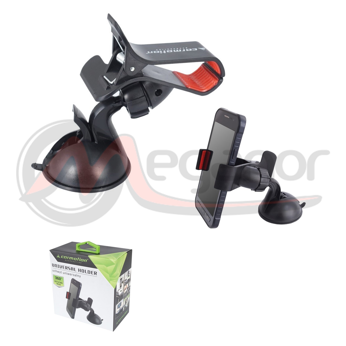Suporte universal para carro para seu telefone ou navegação. Graças a ele, seu telefone permanecerá ao seu alcance durante a viagem.