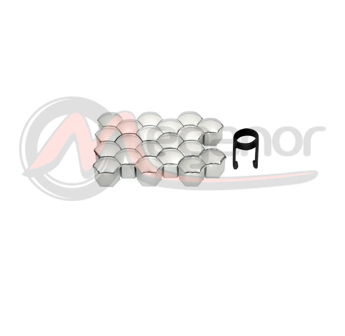 As capas acrescentam estética aos aros de aço e alumínio, mas também protegem os novos parafusos contra condições climáticas, sujeira e umidade. Eles também serão úteis para esconder parafusos feios e corroídos. O conjunto inclui uma chave para facilitar a remoção das sobreposições/Especificações: Número de peças no conjunto: 20 peças; Tamanho: 21\"; Cor: cromado.