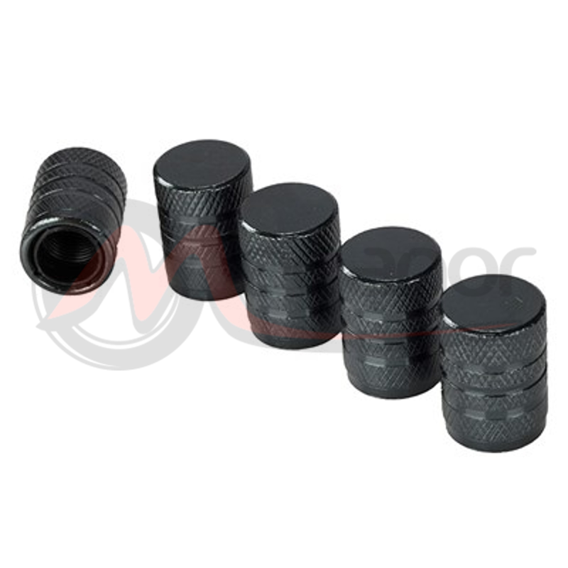 Tampas plásticas das válvulas na cor preta.