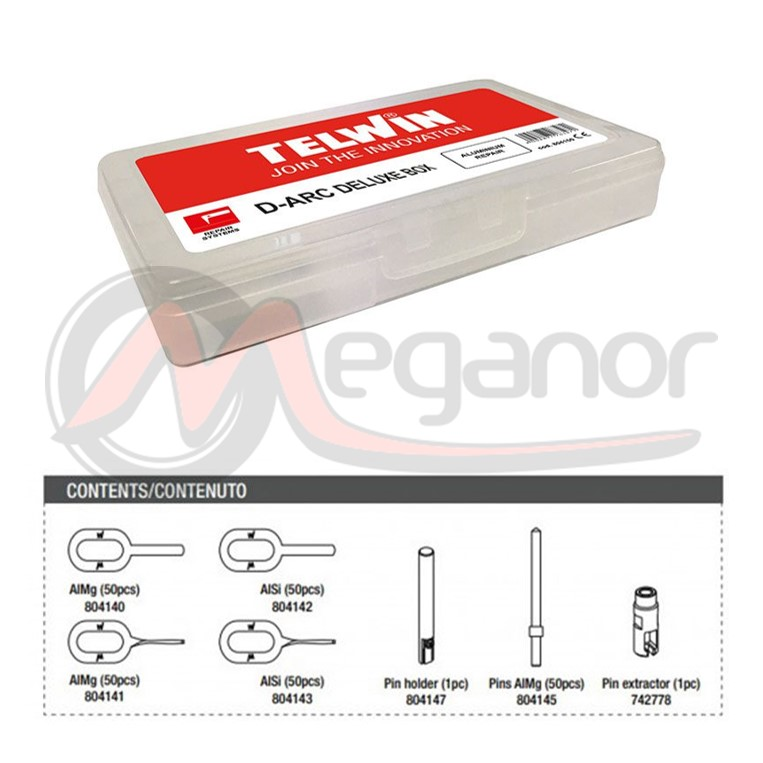 Caixa de consumíveis para sistema de reparação de soldadura por ponto D-Arc 200.