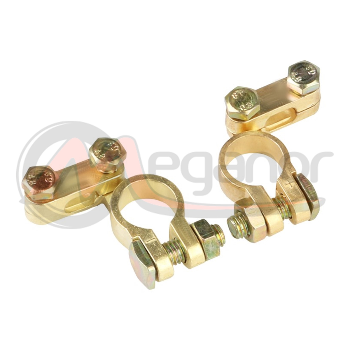 Grampos banhados a latão (capacidade até 300A) concebidos para todos os tipos de baterias 6-12-24V. A montagem e desmontagem são realizadas sem ferramentas. A montagem e desmontagem são realizadas sem ferramentas.