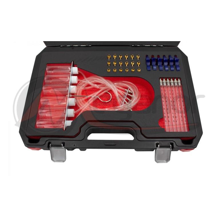 Descrição: Teste de injetores com 24 adaptadores adequados para o uso em injetores diesel Bosch, Denso, Siemens e Delphi.