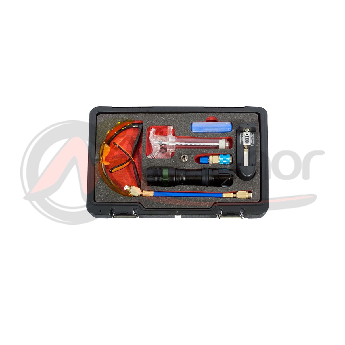 -Permite a deteção de fugas nos sistemas de ar condicionado, motores, caixas de velocidades, etc. (em conjunto com aditivos fluorescentes)