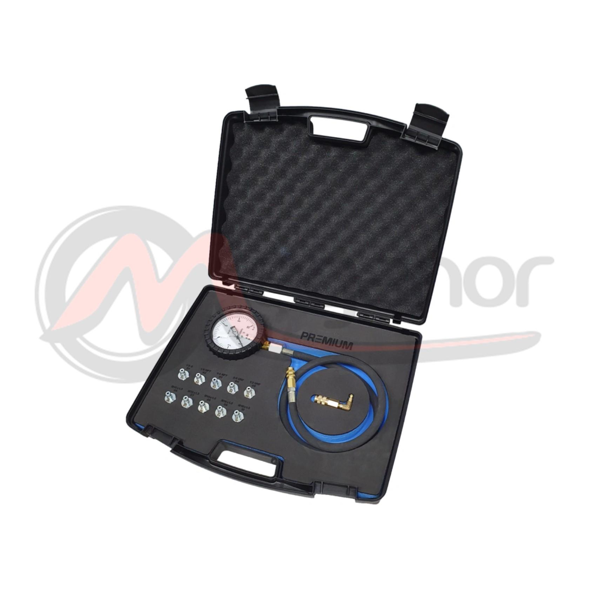- Ferramenta essencial para profissionais que necessitam de realizar diagnósticos precisos e confiáveis em sistemas de lubrificação de veículos. Projetado com um manómetro de alta precisão e vários adaptadores, este kit permite medir com exatidão a pressão do óleo em diversas condições, garantindo um diagnóstico completo e seguro.